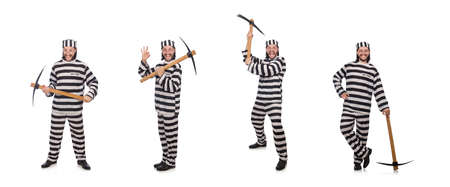 Prison inmate with axe isolated on white