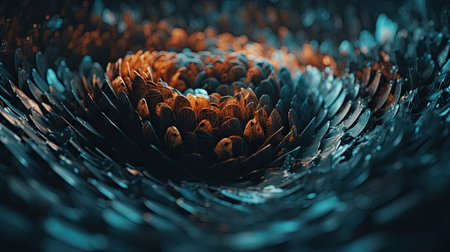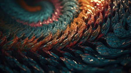 A macro shot of a digital fractal piece highlighting the intricate details and spiraling patterns in vivid bold colors revealing the infinite possibilities within digital creation