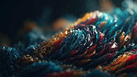 colored wool fabric under the microscope. macro photography. wallpapper, generative AI