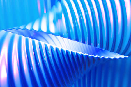 3d render. Abstract dark background with curved lines like tubes twisted in helix and multicolor neon light on tubes. Round composition. Abstract spiral