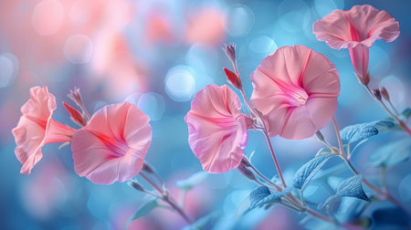 Close-up of vibrant morning glory flowers against a dreamy bokeh background. Great for nature and floral themes.