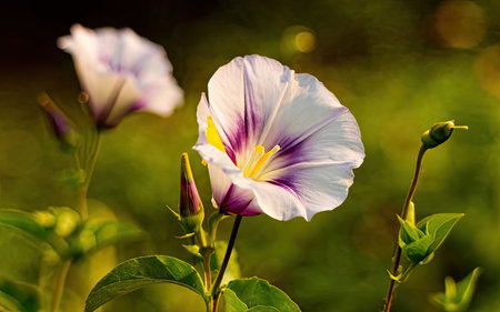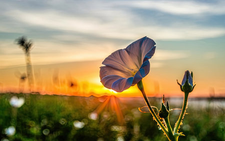 Morning Glory flower in the field at sunset. Morning Glory is a species of flowering plant in the family Ranunculaceae.