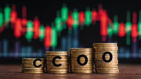 Coins stacked on each other in different positions and with the word COO written on them.