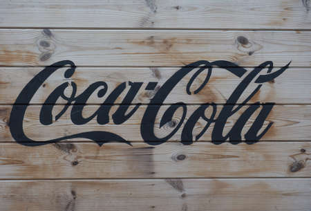 BELFAST, UK - CIRCA JUNE 2018: Coca Cola sign on wooden planks