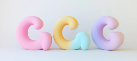 Colorful text made of soft, rounded shapes, 3D rendering on a white background, simple and minimalistic design, cute style, pastel colors, clipart, isolated on a white background, high resolution. --ar 67:30 --v 6.1 Job ID: 9d709712-c9ec-4f52-94dc-9011b10acced