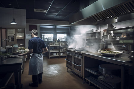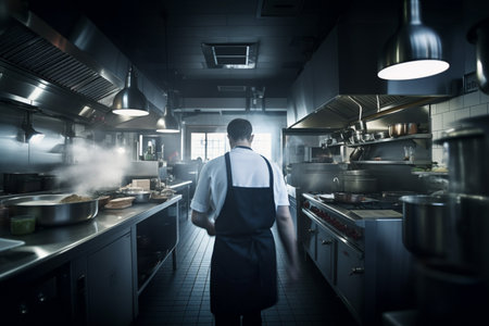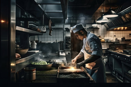 A chef is preparing food in a kitchen, AI