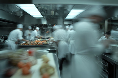 motion chefs of a restaurant kitchen