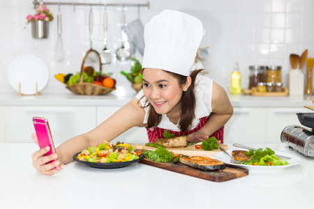 young chinese woman chef prepare food in modern kitchen at home.