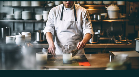 A chef is preparing food in a kitchen, AI