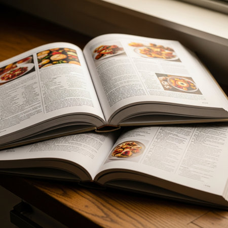 Cooking in a cozy kitchen with a recipe book open and ingredients on the counter