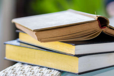 Stack of old book on table.Concept : work and learn from home.