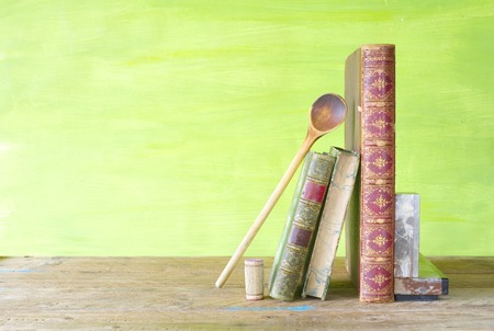 Books on a wooden background
