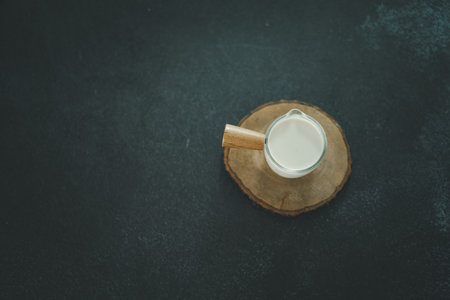 Cool of fresh milk in a shot glass for ingredients to making drinks