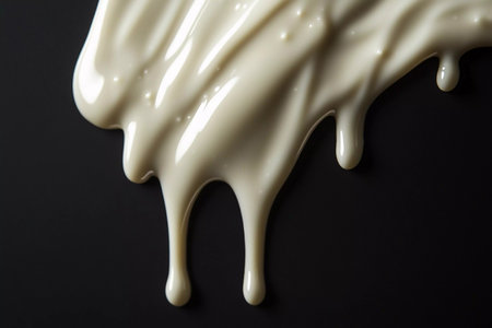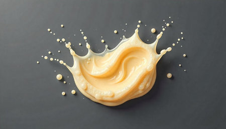 A stunning close-up of creamy liquid splashing against a dark backdrop, showcasing vibrant textures and motion. Ideal for food-related themes.