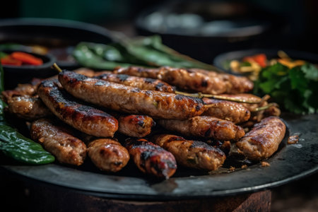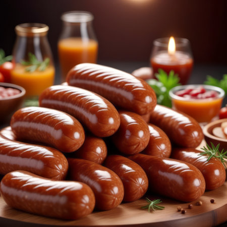 AI Generated. Sausages grilled to perfection with visible grill marks