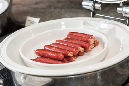 A lot of steam sausage ready to eat