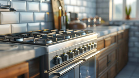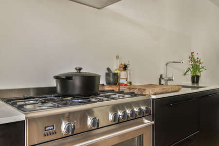 Side view of gas modern stove, interior design