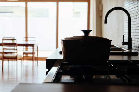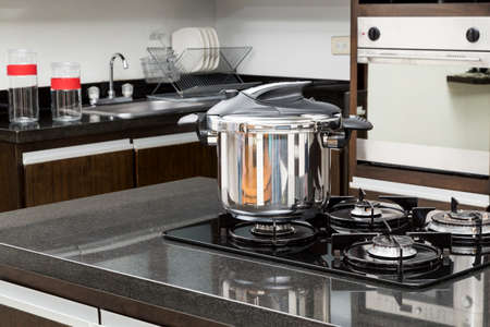 steel pot on stove in modern kitchen