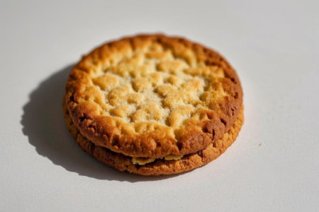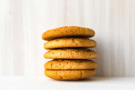 A stack of cookies lies on a white background