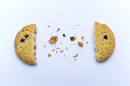 Raisin cookies or biscuit with crumbs flavor. Isolated on white background.