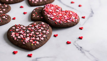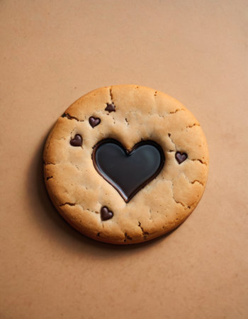 homemade cookies with chocolate and heart shape on a dark wooden background