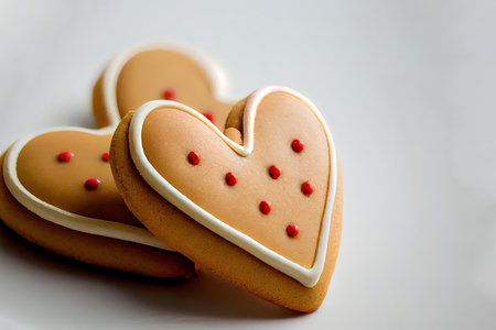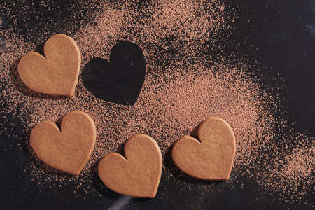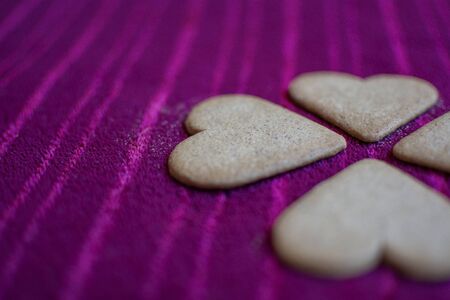 Gingerbread hearts stacked side by side, view from the top, can be used as a greeting card for Valentine's Day.