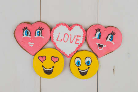 cookies in the shape of hearts, on the cookie letters LOVE. the concept of a gift for Valentines day on February 14. selective focus