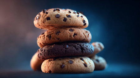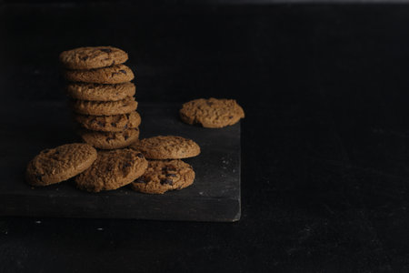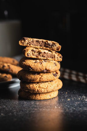 Delicious Stack of Chocolate Chip Cookies with Dark Background and Moody Lighting