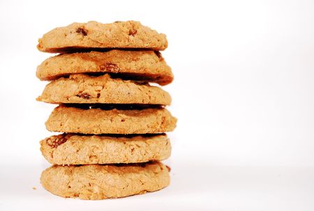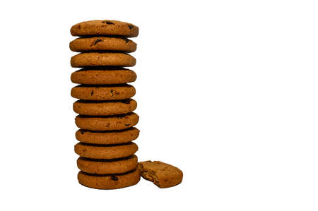 stack of oatmeal cookies, balanced isolated on a white background, breakfast, light snack