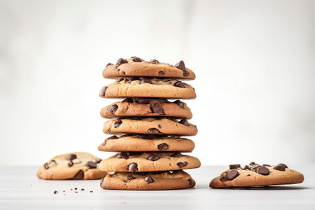 Large stack of homemade chocolate chip cookies, a sweet indulgence generated by artificial intelligence