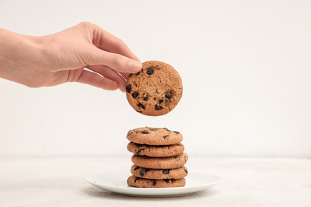 Colorful and tasty chocolate chip cookie. Concept of sweet food and dessert.