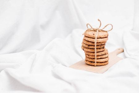 Oatmeal cookies on a white background. Sweet tasty dessert. With place for text.