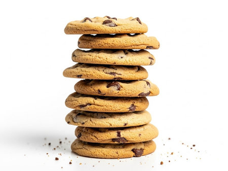 Delicious homemade cookies presented tastefully isolated on a white background.