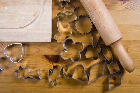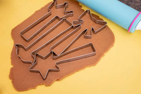 Christmas gingerbread cookie cutters. Traditional Christmas gingerbread baking.