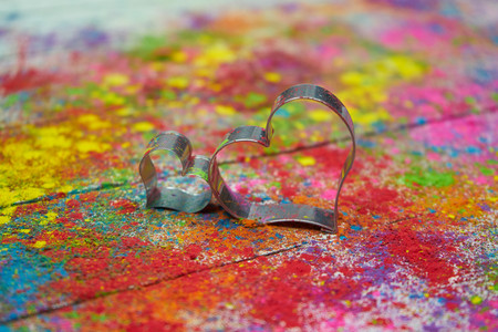 Cookies bake concept for holiday St. Valentine Day on wooden background with copy space
