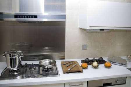 Close-up of stainless steel pots on an induction cooker in a modern kitchen. the concept of a modern kitchen