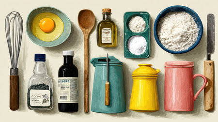 baking workshop with variety of ingredients and tools for participants to explore, created with generative ai