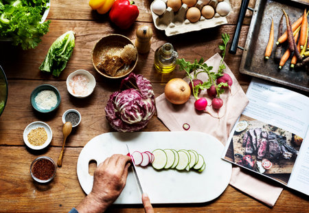 Healthy vegetarian meal preparation in rustic kitchen generated by artificial intelligence