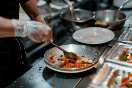 Chef preparing food, meal, in the kitchen, chef cooking, Chef decorating dish