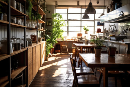 Spacious Kitchen With Ample Counter Top Area, Minimalistic view of an abandoned cafe kitchen after closing hours, AI Generated