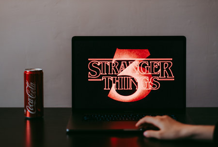 Stranger Things 3 from Netflix TV series Poster, the laptop with shot of Stranger Things Season 3.