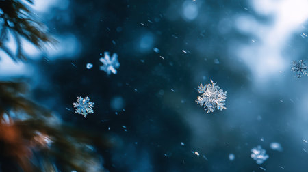Experience the enchanting beauty of gently falling snowflakes in a tranquil winter scene, perfect for capturing the essence of the holiday season and winter charm.