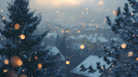 Enchanting winter wonderland with falling snowflakes and twinkling lights for holiday designs
