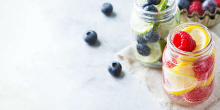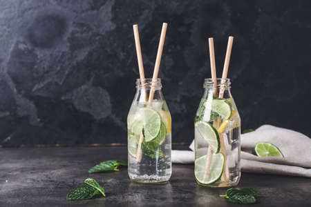 Fresh lime,strawberry and mint infused water, cocktail, detox drink, lemonade. Summer drinks. Health care concept.