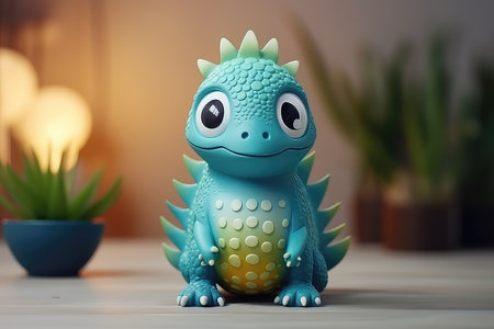 AI Generated. Toy dinosaur figurine standing proudly on a clean white surface display