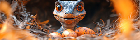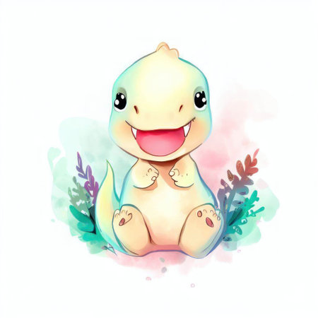 Baby dragon with big, expressive eyes and a friendly smile. Captivating and cute fantasy creature perfect for digital artworks.