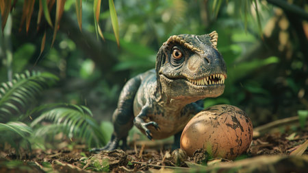 Tyrannosaurus rex with egg in the jungle. 3d rendering