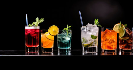 Dark Decadence - Cocktails assortment served on dark background. Classic drink menu concept. Generative AI