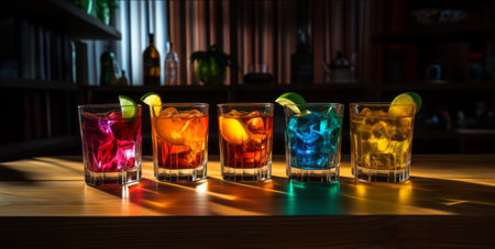 colorful bar in the night scene with iced drinks.