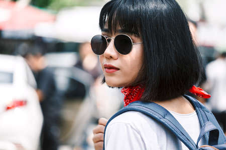 Asian woman tourist travel walk on the street